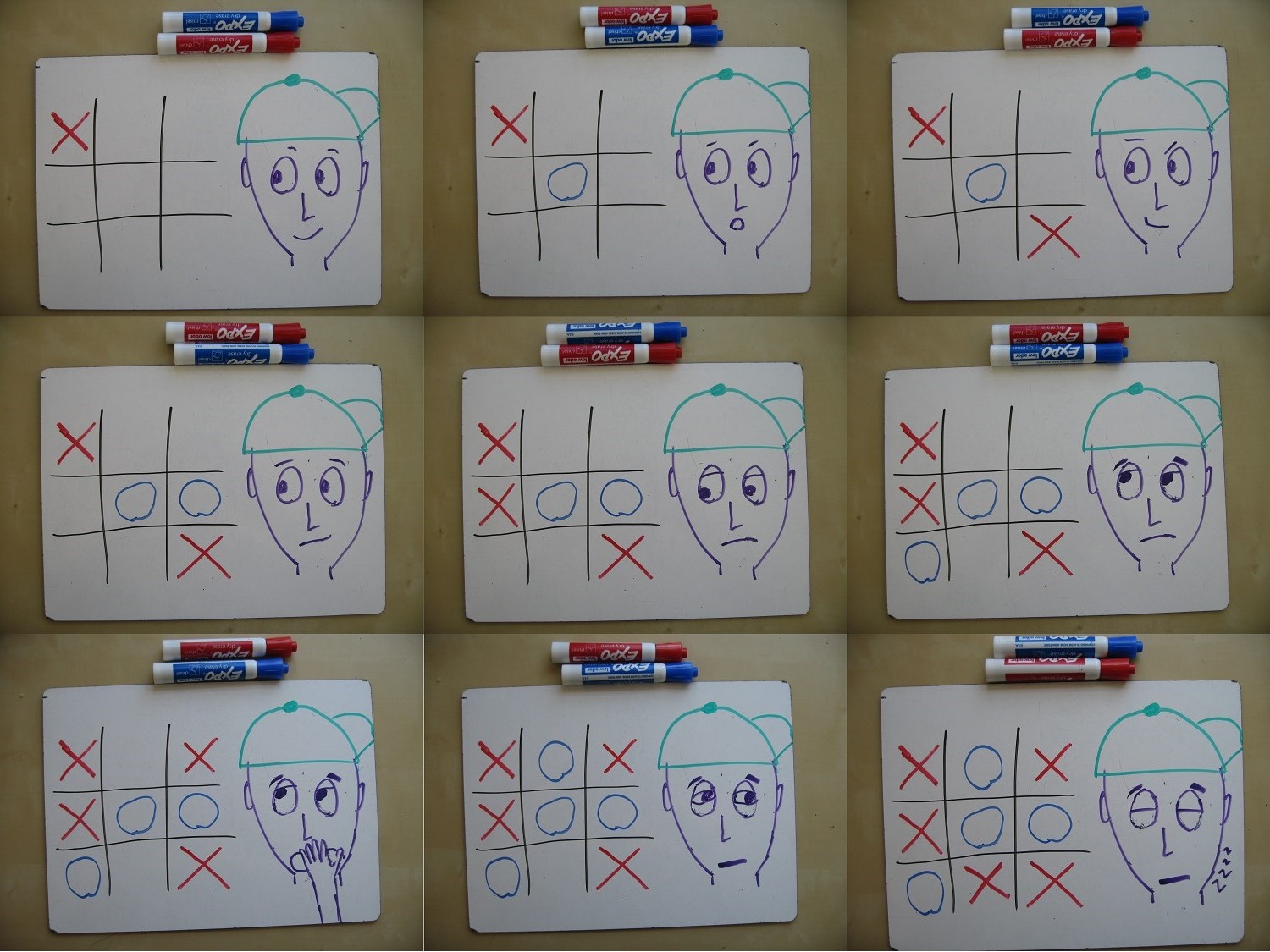 As you may have discovered yourself, tic-tac-toe is terminally dull. There’s no room for creativity or insight. Good players always tie. Games inevitably go something like this:
