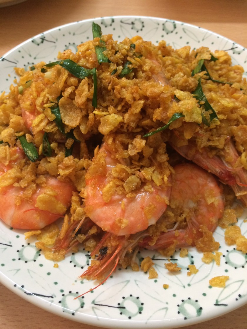 Recently, I found a recipe of cereal prawn on the internet. I tried it.