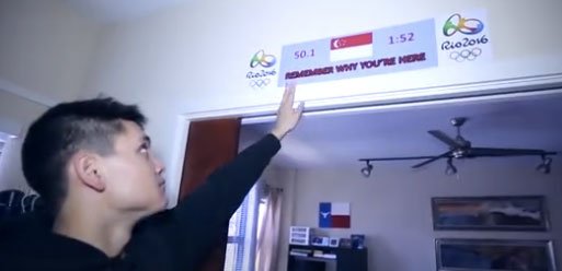 Joseph Schooling also has a motivational poster (see below) to remind himself daily of the times he need to achieve for a podium finish.