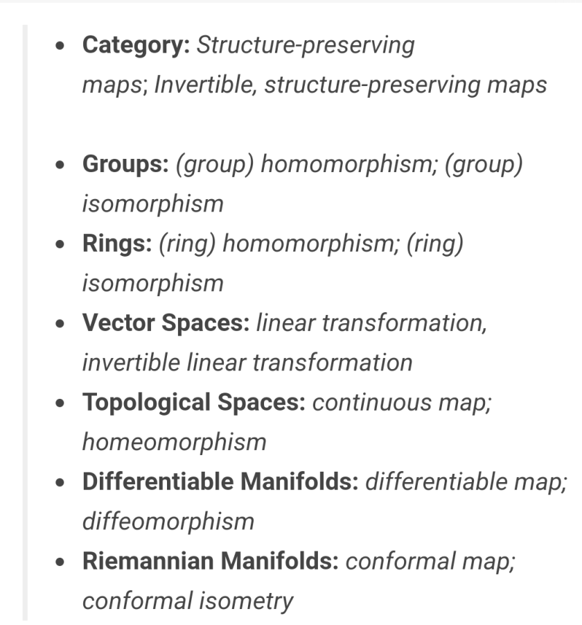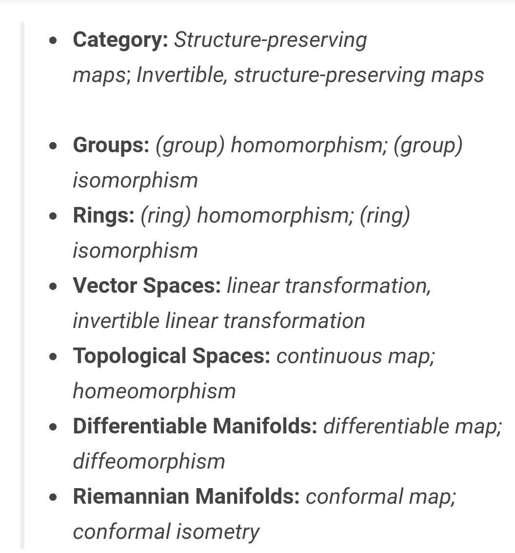 Abstract Algebra studies all kinds ofmathematical structures(Group, Ring, Vector Space, Category, …) , and relationship between them if the structures are preserved after mapping.
