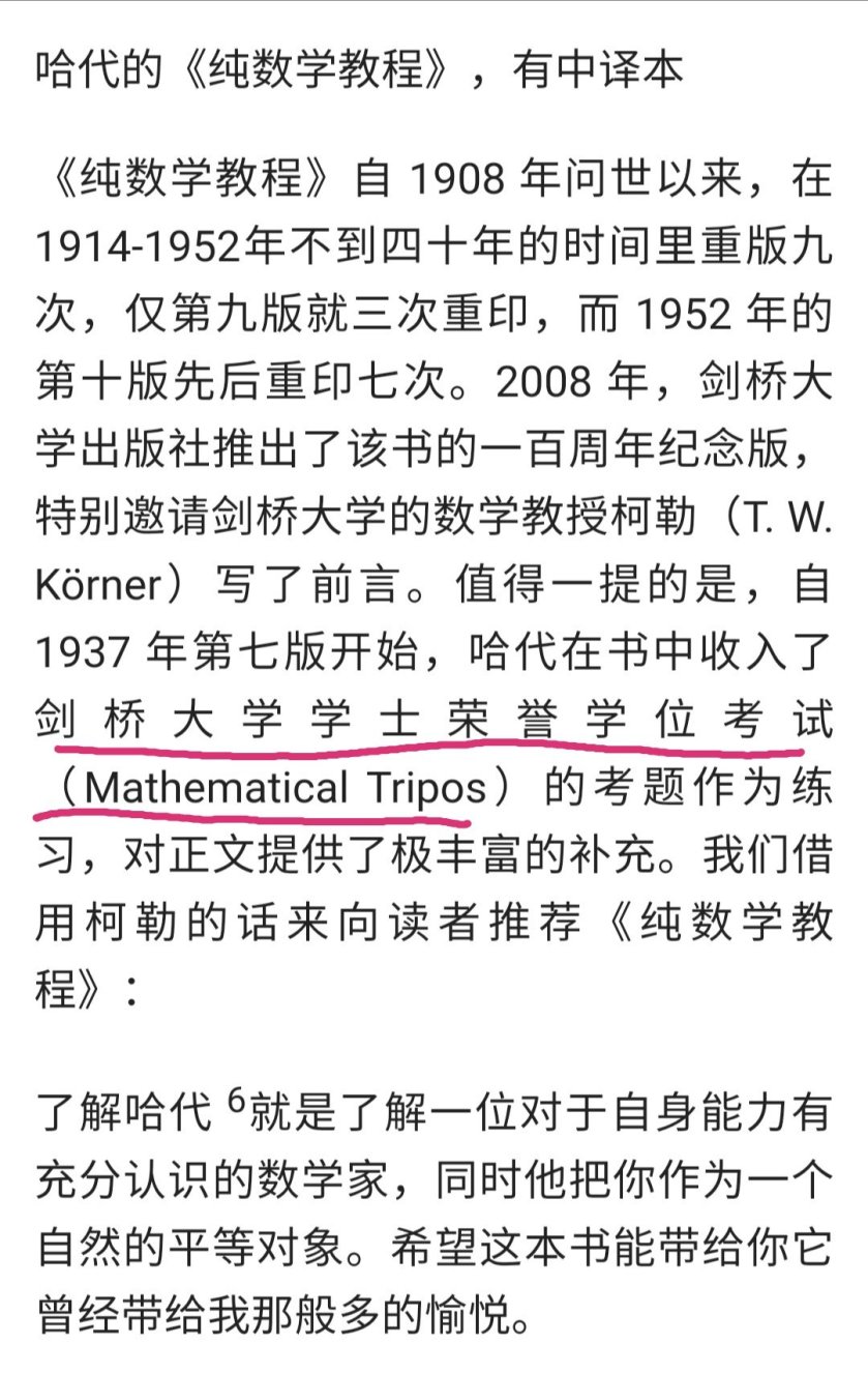 下面这2本数学经典 "葵花宝典"(有中译版) 是WW1&2 前 世界第一流 宗师 (Noether’s ‘Abstract Algebra’ , Hardy’s ‘Number Theory’ ) 的杰作,值得阅读,收藏。