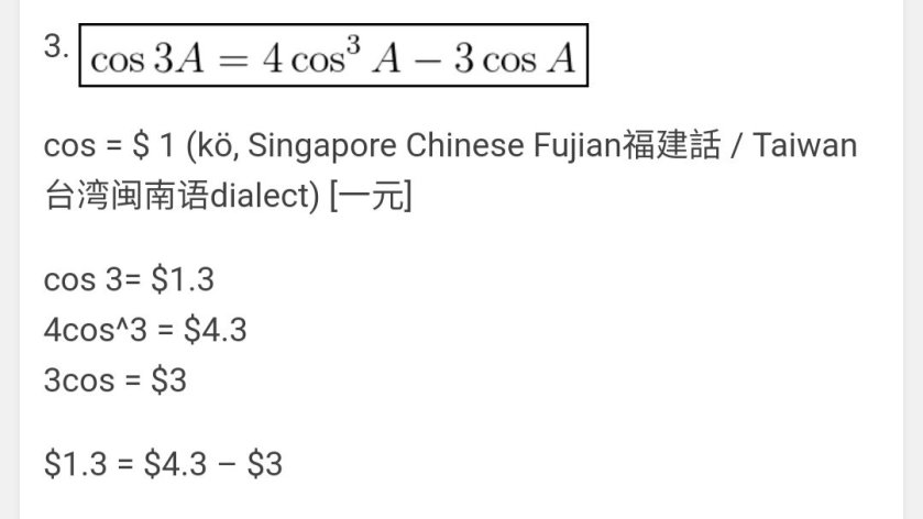 80年代 英校数学老师发明一个记忆妙招 :Singlish TOA CAH SOH 大脚嫂👍