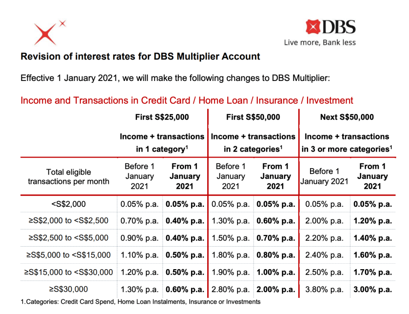 DBS Multiplier has officially announced some changes, effective 1 January 2021. Do check out the official PDF document here.