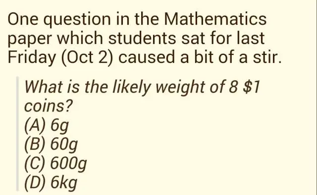 问:8个1元硬币大概有多重?备选答案 6克; 60克; 600克; 6千克。