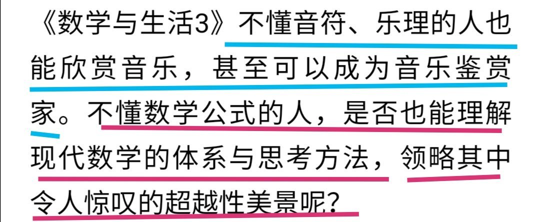 - [Q&A 2] : 数学读得越多,一切数学就变得简单。(这跟学厨艺,钢琴等一样,起初一切都难,但练习煮/弹得多,就越来越容易上手,而且能够创新,举一反三)。40年前在法国大学读抽象代数(Abstract Algebra) 满头雾水,考试心生恐惧。15年前温习并读其他更多的数学书, 顿然开窍,现在爱不释手。
