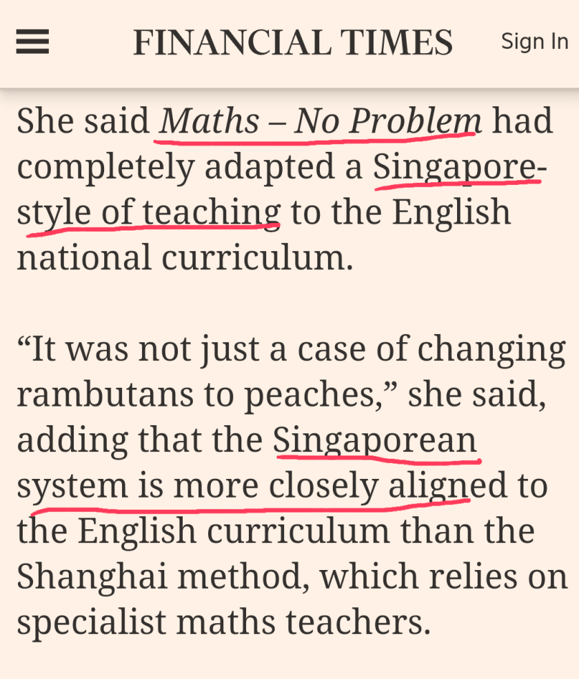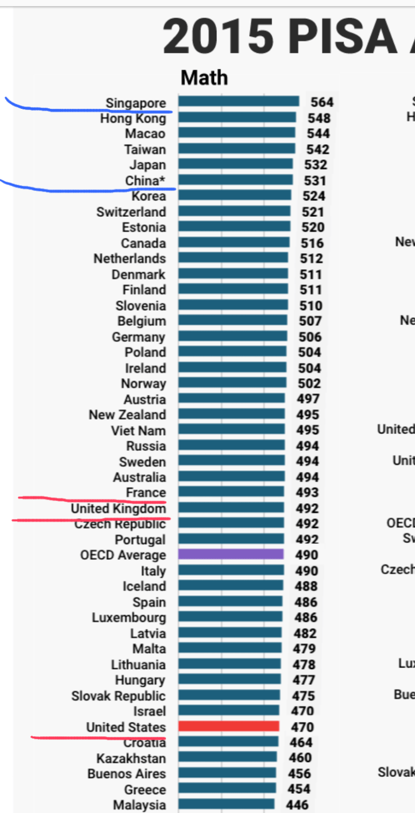 UK, USA, France are copying Chinese Math (from which the “Singapore Modeling Math” derived) in Primary schools, this proves my above-mentioned “Ideal Math” formula is correct. The 2 Asian countries were top in 2015 PISA Math Test for 15-year-old students, while UK was ranked 27th.