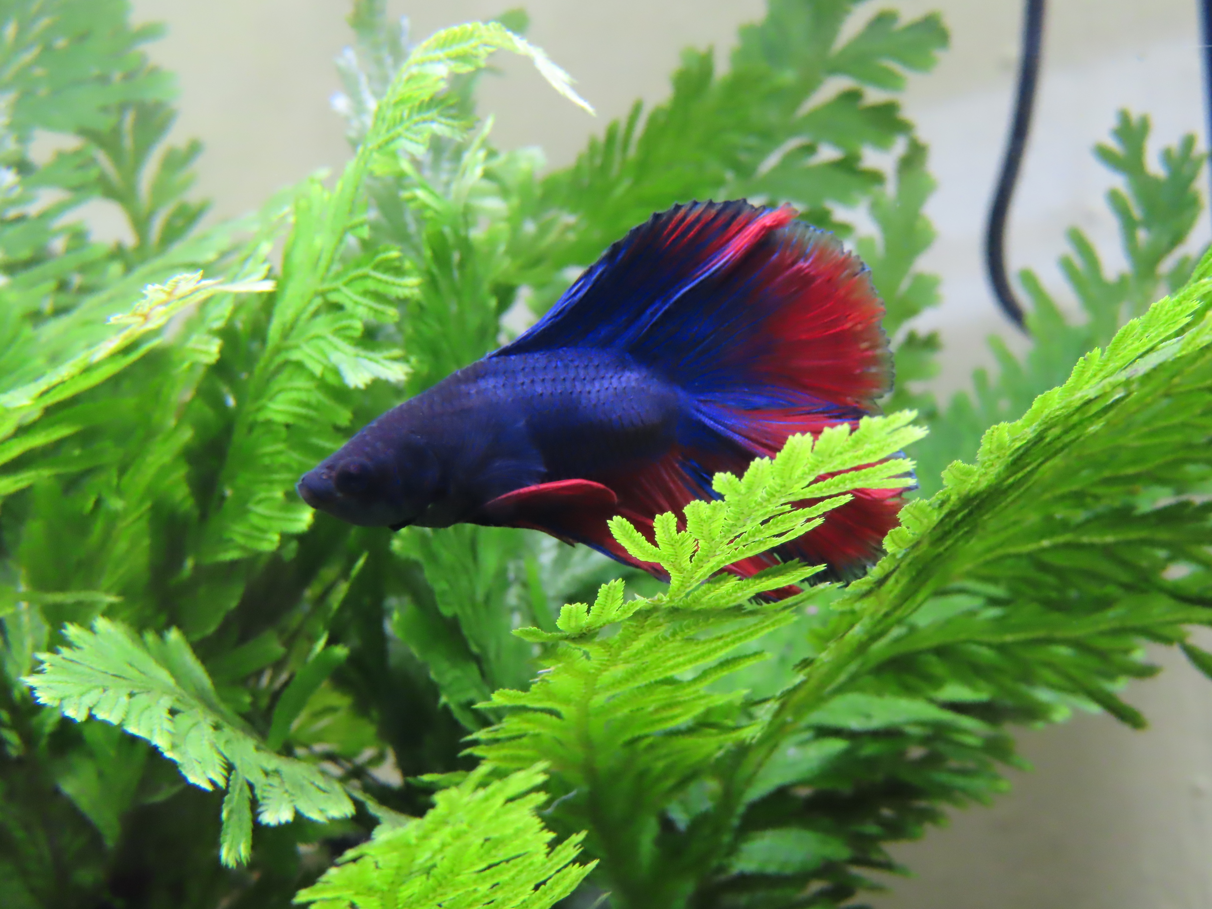 I put it in my 2 gallon planted tank, with Java Ferns and Anubias. I chose female betta as I wanted a short fin betta, and there were no “Plakat” male bettas available. The colors of a female betta are more pale and muted compared to male bettas.